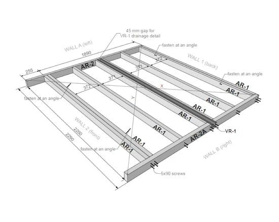 - It is recommended to install the support frame on a waterproof material, for example, bitumen strips